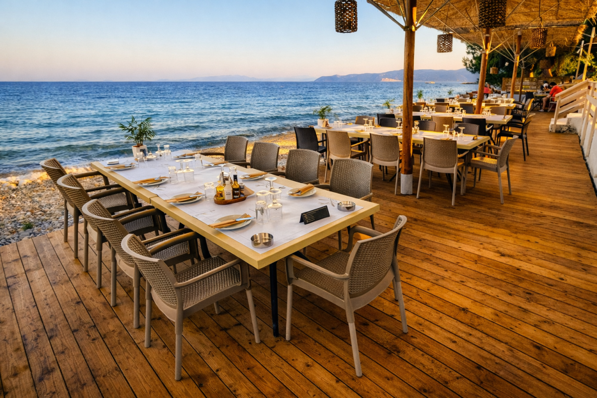 Το Μελτέμι είναι ένα εστιατόριο δίπλα στη θάλασσα, με έμφαση στην ποιότητα, τη γεύση και την απλότητα.